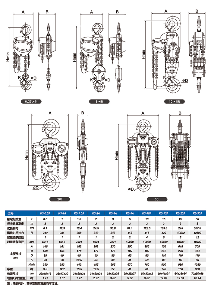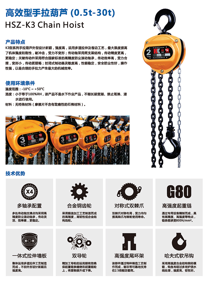 高效型手拉葫蘆HSZ-K3(0.5t-30t)