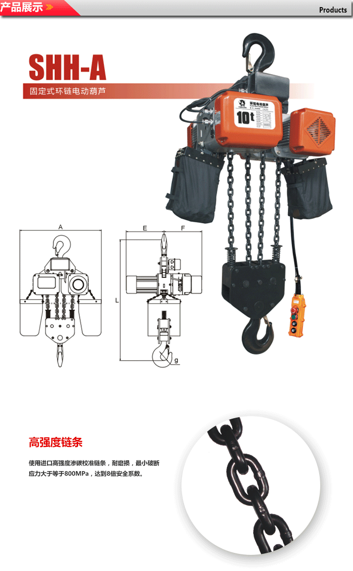 8.起重鏈條是特殊合金鋼制作并經(jīng)過熱處理,不能私自進(jìn)行焊接或改裝。