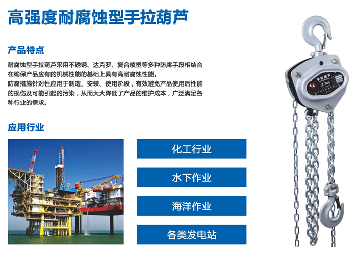 SHH-A固定式環(huán)鏈電動葫蘆 1、安全可靠性高 本機設有限載保護裝置,可避免超載時引發(fā)的不良后果;起重吊鉤設有閉鎖裝置,可防止鎖具意外滑脫;電機設有熱保護裝置,當電機因頻繁使用引起溫升過高時,該裝置會自動切斷電機以保護電機不至于被燒壞;本機設有上、下限位裝置,當?shù)蹉^上升或下降至極限位時,本機會自動切斷